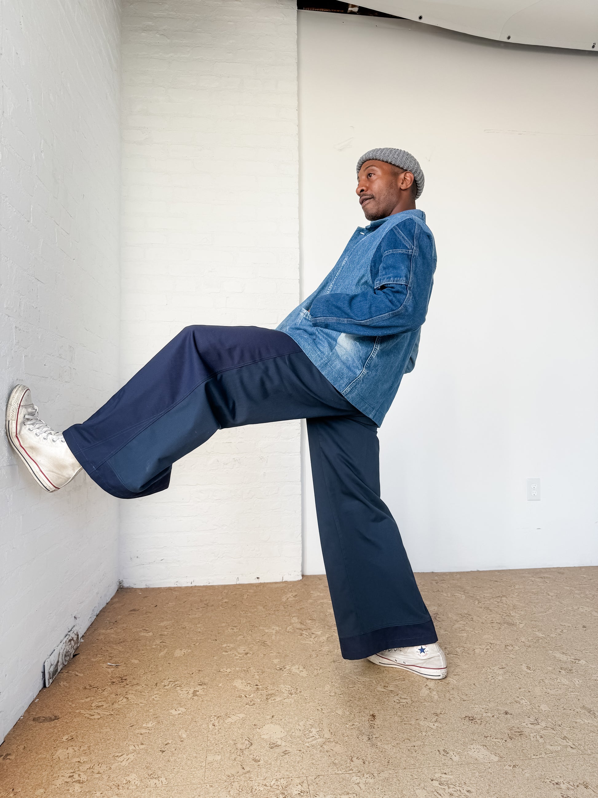 The SUAY remade denim jacket. Constructed from 3 pairs of old denim jeans, upcycled into the most perfectly worn, high vibes jacket. Get ready to get asked about this piece everytime you wear it.